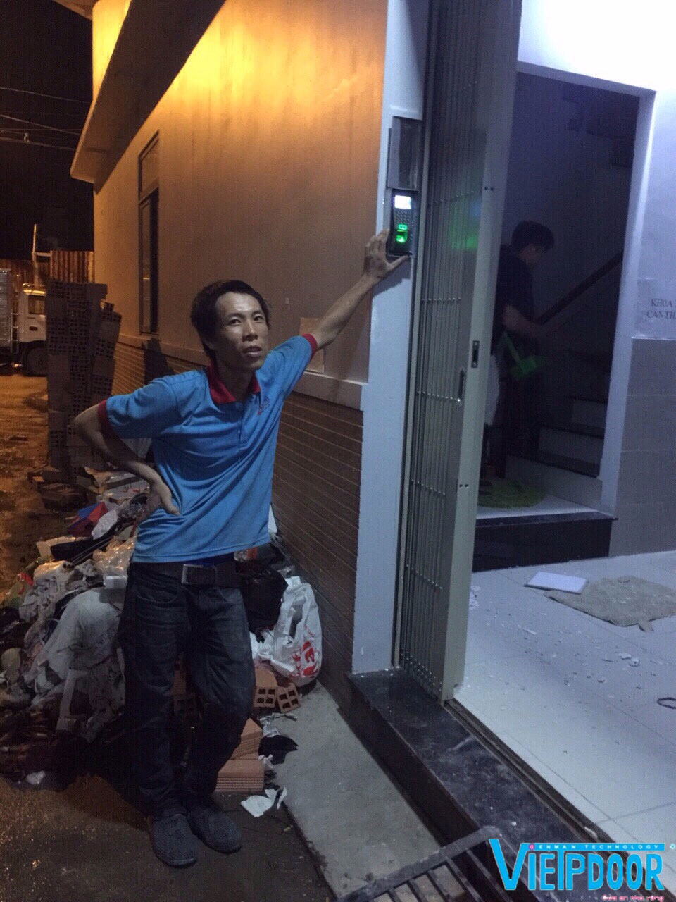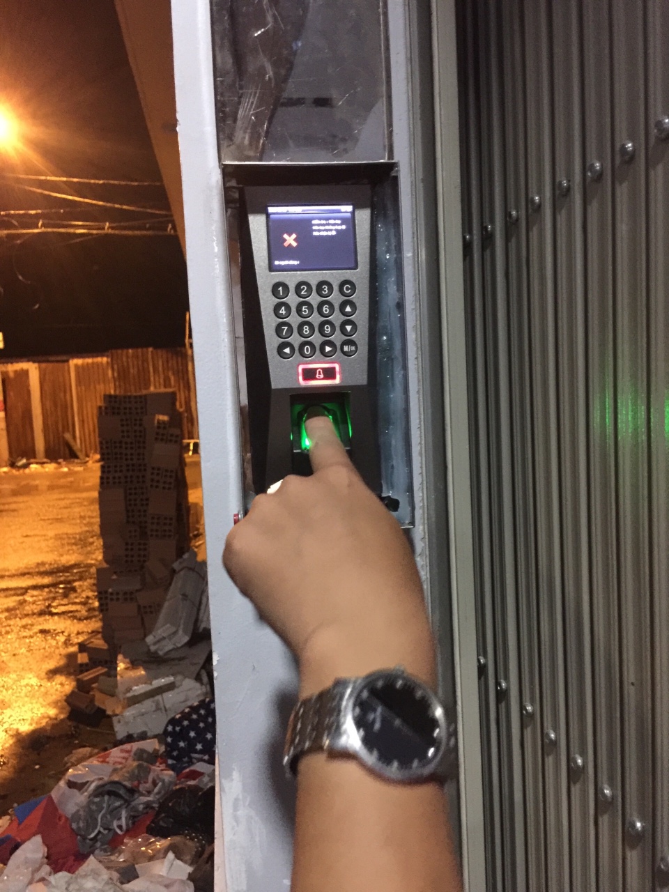 Đầu đọc vân tay phụ nằm phí bên ngoài cửa cuốn